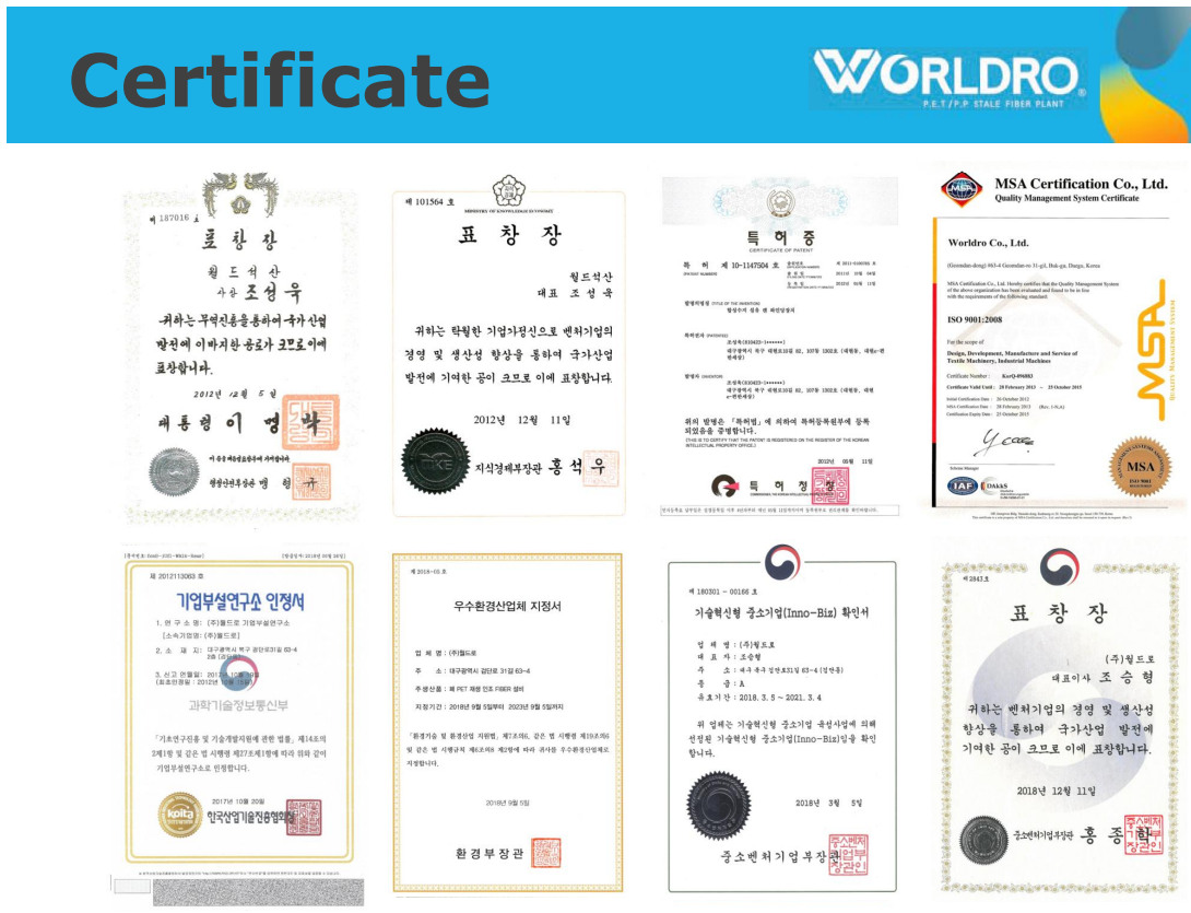 Ускуналаримиз тўлиқ Евро стандартлар асосида ишлаб чиқарилади ва етказиб берилади. Корея сифати Европа, Осиё, Африка ва Американинг кўплаб мамлакатларида тан олинган бўлиб, ушбу давлатлардаги йирик тўқимачилик корхоналарида кўп йиллардан бери хизмат қилиб келмоқда.